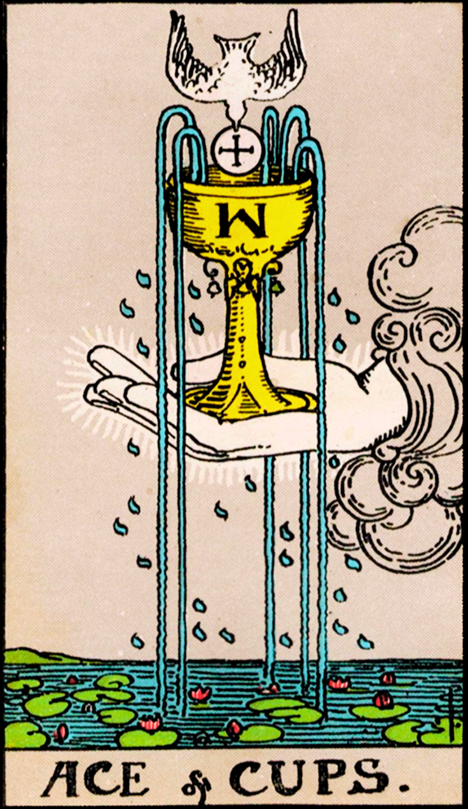 The chalice overflowing with water in the Ace of