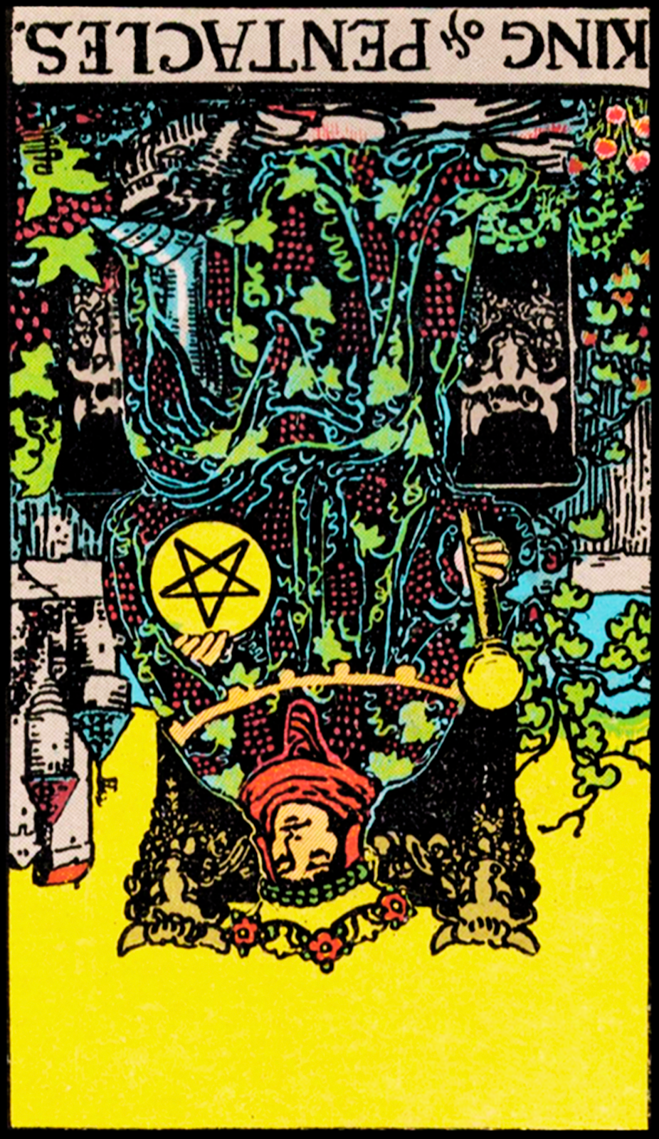 In summary, the reversed King of Pentacles signifies a loss of stability or control in the realm of material possessions, finances, or career. It encourages you to reassess your approach to money and resources, find a balanced focus, and prioritize your overall well-being. This card also warns against stubbornness, resistance to change, and excessive self-interest, while highlighting the importance of integrity and ethical behavior in your material pursuits. By reevaluating your values and goals, you can realign your actions with your authentic self and work toward a greater sense of fulfillment and abundance.